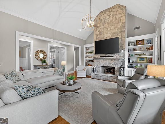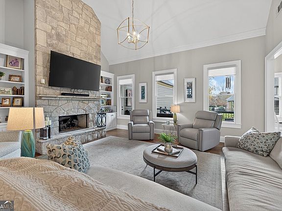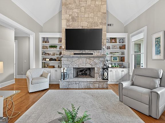 Welcome home to this beautifully maintained property in the highly desired Gated Golf- Chateau Elan community. This incredible residence offers a rare combination of luxury, comfort, and thoughtful design across every level. The inviting rocking-chair front porch welcomes you into a home filled with natural light, hardwood flooring throughout, and a floorplan that truly lives well. The three-car garage sits slightly detached and connected by a breezeway, offering both charm and exceptional functionality. Lawn maintenance is included, providing effortless living year-round. The heart of the home is the impressive stacked-stone fireplace flanked by large windows overlooking the perfect, private, fenced-in backyard-with plenty of room to add a pool. The chef's kitchen features quartz countertops, extensive cabinet and counter space, double ovens, a gas range built into the island, and a huge walk-in pantry. The oversized laundry room is perfectly positioned away from the bedrooms for quiet convenience. On the main level, you'll find the primary suite with renovated spa like bath and huge his and her closet with separate entrances. The spacious secondary bedrooms along with a newly and elegantly renovated full bath are also on the main level. The inviting dining room is perfect for entertaining and seats up to 12. The terrace level is truly extraordinary-almost like its own home. It includes: A second primary suite with a massive bathroom and an enormous walk-in closet An additional bedroom with its own full bath A dedicated movie room with theater seating and a full-size projector A generous poker/game area A full entertainment bar complete with dishwasher and serving space Tons of dry storage and additional closets for organization and overflow The upper deck provides peaceful views of the backyard, and the property offers ample parking for guests. With all new stainless-steel appliances, meticulous maintenance, a fully fenced-in backyard, and lawn care included, this home is truly move-in ready for its next owner. Enjoy the unmatched amenities and lifestyle of Chateau Elan - a place where others vacation, and you get to live every day.