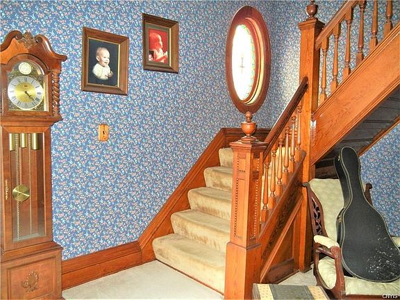 With just under 3000 square feet, this beautiful victorian home is loaded with charm. With stain glass windows, natural woodwork, a stunning foyer, and hardwood floors under the carpeting downstairs, this home has endless possibilities. The first floor offers an option for a first floor bedroom, which would make the home a 5 bedroom. With a kitchenette on the second floor you could easily have a mother in law apartment, or rent it out for added income. Located walking distance to town, its a great location in the village. Natural gas furnace is 6 years old, the steel roof was blasted and resealed in 2014. The carriage house is 3 stories high with plenty of storage. The spacious yard backs up to public parking, which is great for large gatherings. This home offers this and more. Call today
