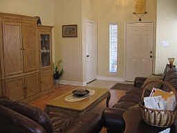 Tiled entry, kitchen and brkfst rm and laminate floors throughout the living area. Two-inch custom faux-wood blinds, high ceilings. Wood deck.