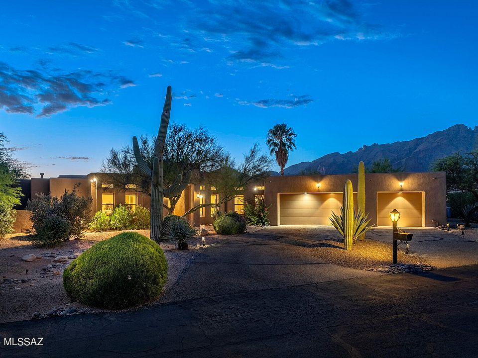 Rare opportunity to own a custom home on a near one-acre homesite with unobstructed mountain views in gated Pontatoc Canyon. Conveniently located in the heart of the Catalina Foothills, this private sanctuary is perched above a large ravine/buffer area creating a wide-open, expansive view & unparalleled privacy. Circular driveway leads to covered entry. The current owners extensively renovated this home. Walk in to a bright, open space with high ceilings & huge windows that capture mountain views & fill the space with natural light. Great room with gas fireplace flanked with custom built-in shelving & formal dining room with ample space to host large dinner parties. Open kitchen with center island has custom cabinets, granite counters & CONT. ...upgraded, stainless steel appliances, pantry, & breakfast nook with views. Travertine floors throughout. This four bedroom, three bathroom home has a split bedroom floor plan. Each of the 3 bathrooms in the house have been updated. Step outside into your own private paradise with a covered patio that spans the back of the home. A perfect outdoor space to enjoy the privacy and views. The spacious 3/4-acre lot has a pool & large grassy area. There is an oversized 3-car garage with storage. Both HVAC replaced approximately 2 years ago. Excellent foothills location close to La Paloma Country Club, La Encantada Mall, Hiking Trails, Shopping, & Restaurants. Catalina Foothills District #16 School District. No polybutylene pipes! Current owner repiped the house with PEX pipes in 2008 at time of purchase.