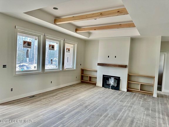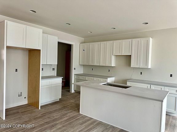 Almost Complete! This gorgeous ranch style home that is centrally located between Palmer & Wasilla on an oversize flat acre features a sought-after split bedroom plan, black vinyl windows, quartz counters, custom tile work, custom lighting, LVP flooring, a laundry/mud rm., a large pantry w/ butcher block counters, the living room features a beautiful entertainment center w/ a gas fireplace, etc..