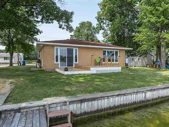 *Open House Saturday 5/25 & 5/26 from 11-12:30pm. Outstanding on Oakridge! Level lot to the waters edge with a great view and 81' of sandy swimming on 2,000 acre all sports Wixom Lake. The water gets deep at the end of the dock so go ahead and jump in! Throw a line in and see what's biting or enjoy boating & jetskiing. On quieter days paddle board or kayak. Wood seawall and a small sandy beach play area for the kids. The brick cottage has been in the same family for nearly 30 years and is now ready for a new family to make memories. 2 freshly painted bedrooms, 1 full updated bath, well equipped kitchen and open dining & living room that offers a slider to the composite deck overlooking the lake. Enjoy gorgeous sunrises, views of the moon and even an occassional rainbow. Many updates include newer windows, doors, and a storage shed. Updated septic but still plenty of room to park 4 cars or even build an attached garage. Enjoy cottage life, lake living and an active lifestyle taking walks or bike rides in the neighborhood.