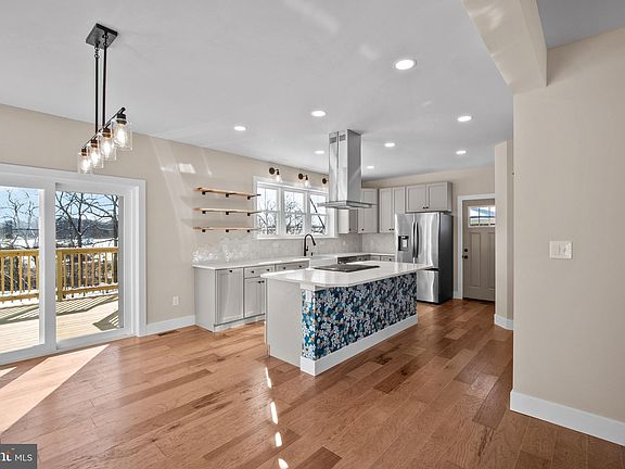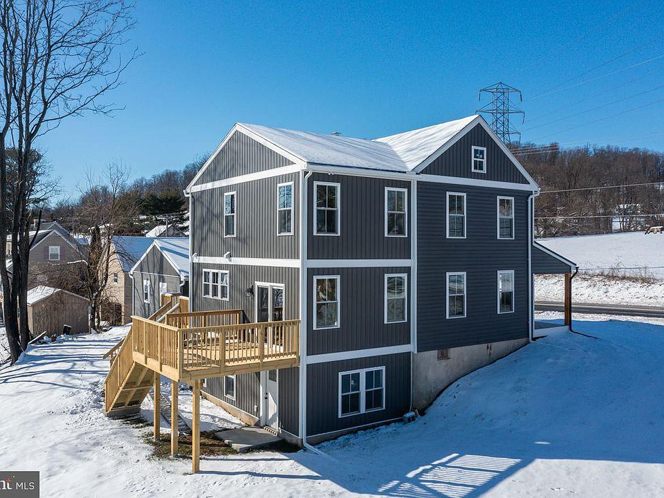 Completely remodeled, this beautiful four bedroom, two and a half bath farmhouse boasts custom upgrades and quality finishes throughout. Situated on almost two acres of land with nice countryside views, this home is full of character and charm inside and out. First floor includes a formal living room, dining room area with sliders that lead to a large deck overlooking the back yard. Stunning kitchen includes a spacious island with a unique and fun design, built in range with cooktop, shelving, and seating. There is also tile backsplash, quartz countertops, rustic style rough cut shelving, a farmhouse sink, and pantry with a glass door ensuring both style and functionality. Plenty of light throughout the home, nine foot ceilings, engineered hardwood floors throughout, and deep window sills. Convenient first floor laundry and half bath with charming barn style door. A staircase with rod iron railing leads upstairs to the master bedroom suite with walk in closet, luxurious tiled shower with seat, and double sink. 3 additional bedrooms and a hall bath with a stylish and uniquely designed tiled floor complete the second level. Partially finished lower level with large family room is the perfect spot to spend time with your friends and family. The addition boasts vertical vinyl siding, adding a touch of modernity to this classic-styled home. Detached two car garage and 2 decks seamlessly extend the living space outdoors during the summer months. This home has style and visual appeal with it’s harmonious blend of color choices and aesthetic finishes throughout. This one won’t last!