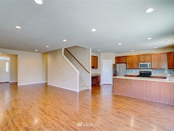 With one of the larger floorplans, this Stunning Skagit Highlands 2 story features open concept living areas this home is move-in ready! Main floor spacious gathering area for living, dining, kitchen use. Engineered hardwood flooring, cherry cabinets, granite countertops tile backsplash, brand new dishwasher, walk-in pantry. Also bedroom & full bath on main level. Slider to huge new patio/sport court for outdoor living, playing, entertaining. Double door master bedroom w/5 piece bath, 2 walk-in closets! Upstairs family/bonus room, 3 large bedrooms/2 full baths - room & rooms for all your comfortable living needs. Large covered front porch. 2 car garage. Freshly professionally cleaned and ready for new owners to love!