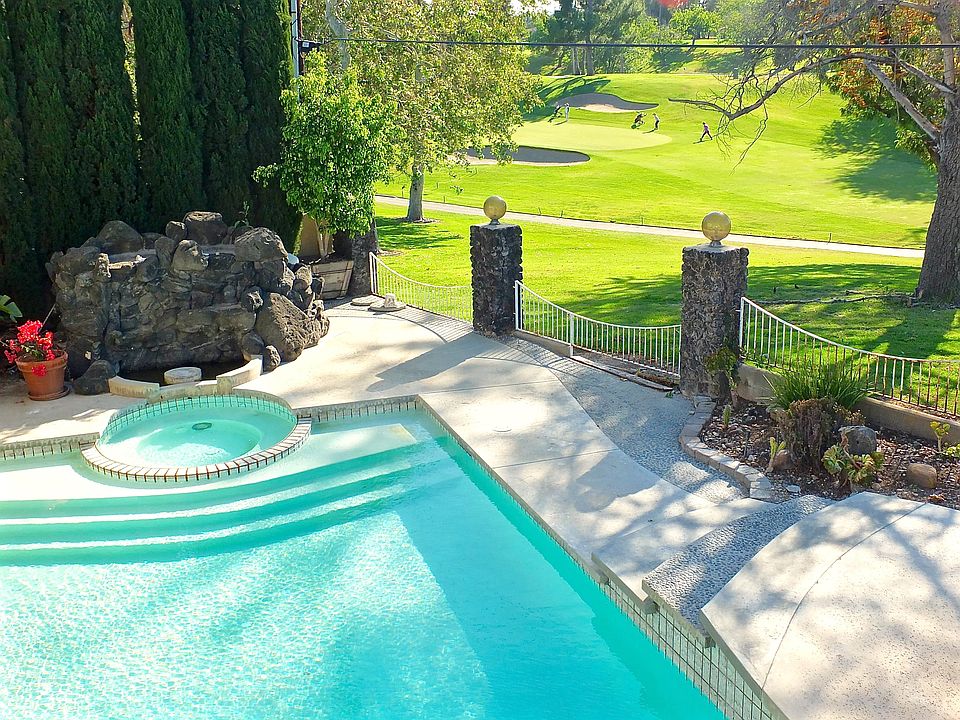 Gorgeous, Retro Golf Course View home on the 3rd Fairway-Valley View at prestigious Los Coyotes Country Club. Home features tiled entrance, living room with fireplace, newly remodeled great room with fireplace, remodeled full bathroom on the main level, 2 bedrooms on main level (one with a separate entrance and direct garage access), wet bar and spiral stairs to spacious open loft and views. Locate the hidden door to the wine cellar with lounge seating area and underground view of the pool! Upper level Primary Suite and 2 bedrooms have direct access to enclosed patio. The Primary suite is complete with sitting area, cedar lined walk in closet, more closets and remodeled bathroom with jacuzzi tub. All three bedrooms have access to the enclosed sunroom, so sit relax, enjoy morning coffee and the spectacular golf view. A few steps down find the galley kitchen, separate dining room, dining area and enclosed laundry room. Outside, find a true entertainer's dream backyard, complete with dazzling pool and the breathtaking golf course views. This truly is a one of a kind golf course view home. DIRECT access to Los Coyotes Golf Course. Please note: Some photos virtually enhanced and staged.