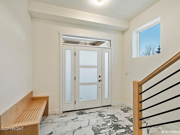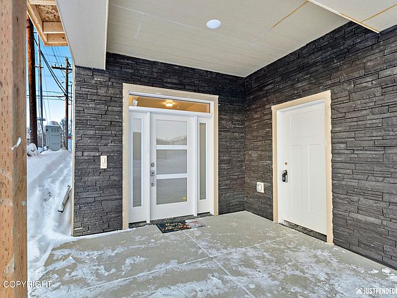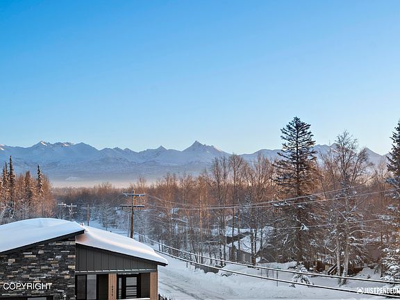 COMPLETE AND READY FOR A QUICK MOVE-IN! Extra-large 814 sqft triple garage w/505 sf of storage. The spacious great room is a showstopper, w/extra-large windows offering breathtaking views of the Chugach Range. A tile fireplace with built-in bookcase seamlessly connects to the open kitchen, w/a plethora of cabinets, eat-at island, double ovens, gas cooktop, and a farmhouse sink. MOREThe 106 sqft pantry with a window is a chef's delight. First-floor office/bed with coffered ceilings, French doors, and south & west-facing windows for cross lighting. Journey upstairs by a hidden staircase to find the owner's suite w/outstanding views, separate dual vanities, tiled shower w/bench, pvt water closet & soaking tub. 2 additional beds, bath w/double vanities & laundry room upstairs. Exterior entry w/timeless stone walls and a sleek concrete stoop. Modern roofline and metal siding accent.