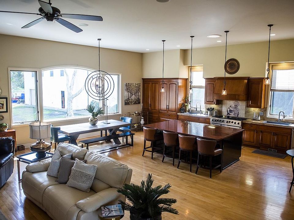 Breathtaking 5471 Southside Road in Hollister is a beautifully designed and one-of-a-kind 4,108 sq.ft. home with a 2,532 sq. ft. two-story workshop. Rebuilt in 2004 the home has 3 bedrooms, 3 and half bathrooms, 2 kitchens - one on each level, and open living and kitchen spaces. The master bedroom is located on the main floor and has dual bathrooms with a cedar floor walk-in closet. The kitchen is equipped with Viking appliances, tile and granite counter-tops, custom built-in cabinets, large island with breakfast bar, walk-in pantry, and open to the living space. The basement floor has two bedrooms, two full bathrooms, a laundry room, and another full kitchen with living space. The basement has exterior access to make Airbnb or VRBO a possibility. The 2,532 sq. ft. workshop has a separate garage, R.V. garage with hookups on the side yard, loft, and separate storage area. Piece of San Benito history.