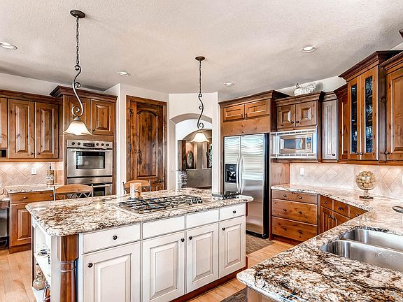 Spectacular 2 story on elevated lot with great views! Custom home with extensive built ins and meticulous Alder wood carpentry/trim throughout. Many improvements in last year include: All new high end appliances. New furnace, AC and whole house humidifier! two new water heaters, complete back yard fencing with solar lighting, new front porch gate! True Gourmet kitchen with high end stainless appliance possible 3rd oven in new dual unit, gorgeous granite countertops and breakfast nook area. Kitchen is adjacent to large great room and front deck/with pikes peak and front range mountain views. Main floor master home with spa-like master bathroom and large walk in closet! Finished lower level with exceptional wine cellar, wet bar and large rec room! This entire home is Great for entertaining! Private upper level is great for kids/guests. Outdoor oasis includes covered patio with included built in grill, outdoor fireplace- river-like water feature. So much more to see here. Easy commute.