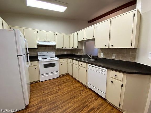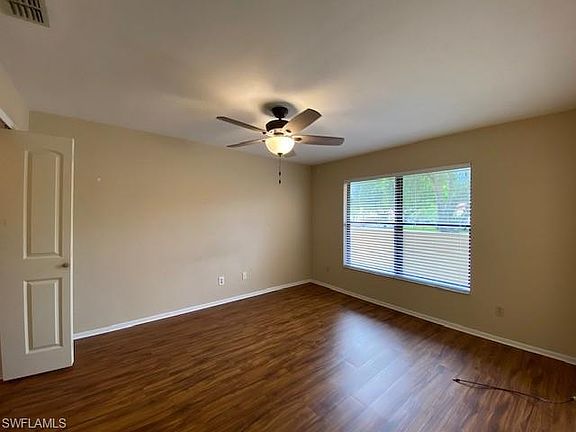 Annual Rental in Fort Myers -UNIQUE & RARELY AVAILABLE 2/2 attached villa with a 1 car garage with just under 1100 square feet of living space under air in the sought after hidden gem of a location known as Governors Island right off Daniels Pkwy and US41. This unit has a wonderful view of the lake and has wood flooring throughout with tile in kitchen and bathrooms and is ready for immediate occupancy. Boasting vaulted ceilings, updated baths, large eat-in kitchen and screened lanai. This villa has SO much to offer. Live close to everything yet feel like you're away from it all. Walking distance to Bell Tower shops, movie theater, restaurants, and more! Within 15-20 minute drive from the beaches, as well as the airport. This is a gated community with a private pool for the residents of Governors Island. No pets or smoking permitted. Trash removal and lawn care included. Application Fee $100 PER ADULT. One-time lease administrative fee of $160. Please note that properties within an Association may have an additional application process, will be subject to an additional fee(s) and an additional approval process.