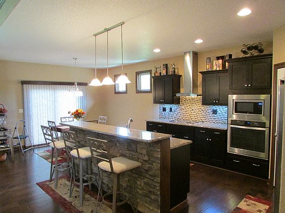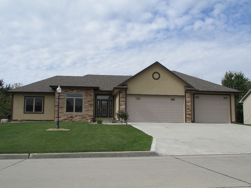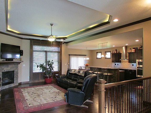 Custom Built Walkout Ranch with 3,349 SF Finished. 4+ Bedrooms, 3 Bathrooms, 2 Fireplaces Open Concept Tri-level lit Trayed ceilings, Hand-scraped Bruce Hickory flooring, Granite Kitchen, Under Cabinet lighting, Stainless Appliances, Wlk-in Corner Pantry, Stone Breakfast Bar open to Dining Area with Slider to Elevated back Deck, Large Office off Living Room area with French Doors & closet (could be BR), 18' Master Bedroom Tray ceiling, Bath with Tiled Corner Jet Tub, Double Shower & Walk-in Closet. Another Bedroom on 1st Floor. Also 1st Floor Laundry & Mud Room off Garage. FINISHED WALKOUT LOWER LEVEL with 2 Bedrooms, a Full Kitchen, 3/4 Bath & 30' Family Room w/ Gas Fireplace. Walk-out to Patio & Backyard. OVERSIZED HEATED 3 CAR GARAGE with 39' DEEP STALL for Large Boat, Trailer or Toys AND Additional 16' x 16' Garage/Utility Area under 1st Floor Garage. Beautiful Home, Beautiful Area, LOW LOW LOW TAXES... Convenient to everything in the Metro Area!!! See This Home Today!!!