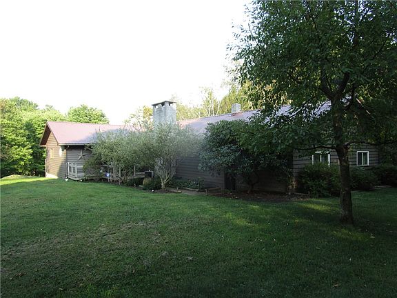 Brick and Cedar ranch on Approximately 4 acres. 3 bedrooms including master bedroom with its own full bath and main level laundry. Full partially finished basement with recreation room and third full bath. Newer metal roof, paved circular driveway. Detached workshop and small barn. Wood/Coal supplemental heat. Electric radiant heat is also installed in all rooms except master bedroom. Also on the same parcel are 2 manufactured homes. One is currently rented. The second manufactured home is in need of renovation.