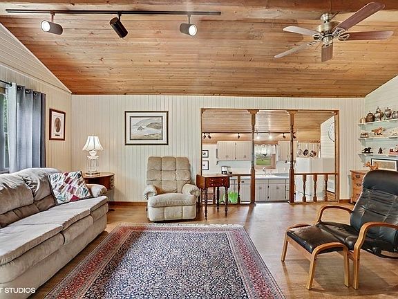 Extremely well maintained, rustic, walk out ranch on over an acre of land is awaiting its new Owner. Setting far off the road, this 1 bedroom, 1.75 bath home is perfectly private and pet friendly with a double fenced/gated system. On the main level you will find all of the common living spaces, which are open to one another, ideal for entertaining: kitchen, living room, office/workspace, full bath and den which has a sliding glass door to the private deck. Downstairs you will find the private sleeping quarters complete with the Master bedroom with sliders out to the private patio, a dressing area, huge cedar closet, a 3/4 bath with full laundry facilities and a private library room. There are two garages on the premises: 24X30 and a heated 24X24. These outbuildings are great for your hobbies, toys or possibly your small business! Located within minutes to major interstates, Michigan City, LaPorte and Michigan. Make this YOUR rustic retreat today!