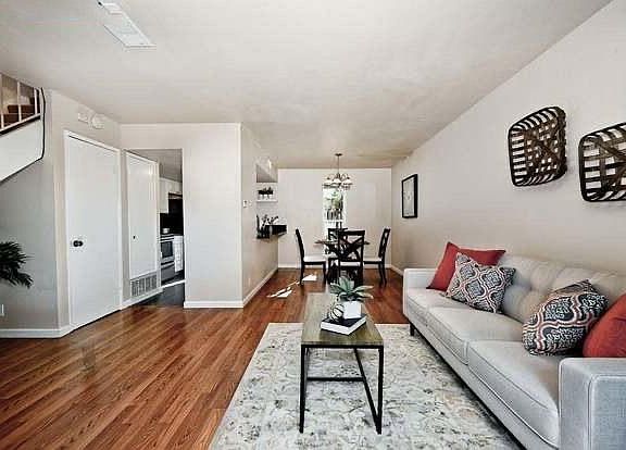 Welcome home to this beautiful 2-story unfurnished townhouse style condo which has been updated throughout including wood laminate and tile floors in the main living area and mirror closet doors in the carpeted upstairs bedrooms. The open floor plan makes entertaining a delight with a half bath downstairs, you have the convenience of having your entire entertaining space on one level. Central A/C keeps hot days at bay. Covered parking, a separate storage unit, and a private exterior patio area make this a great place to call home. The Roundtree complex has a clubhouse and beautiful pool perfect for those hot summer days. Wonderful location minutes from the Concord Pavilion, Cal State East Bay, shopping, transportation, freeways, schools, and entertainment. Note this is an unfurnished unit. Water and garbage and included in rent.
