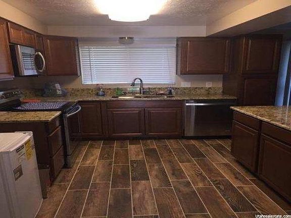 Stunning main level remodel including a brand new Knotty Alder kitchen with island bar granite counter tops and new stainless steel appliances, open floor plan flows well and is full of light with new 3-tone paint, all new flooring includes new tile that looks like hard wood, large semi formal D.R. opens up to a large front room with an attractive full brick fireplace, new base and case, remodeled baths upstairs incl. new vanities, fixtures, flooring, and more. Enormous family room down with wood burning stove and wet bar. Make a great mother in law apartment with an additional 3/4 bath and 2 bedrooms down, plus plenty of storage with plenty of space and shelving, newer furnace and water heater, swamp cooler plus large deep 2 car garage with a utility sink. Private fully fenced back yard with mature trees tucked in a private cul-de-sac with RV parking. Alarm system only included with buyers assuring a 3 year contract at $49/month. Water softener rented.