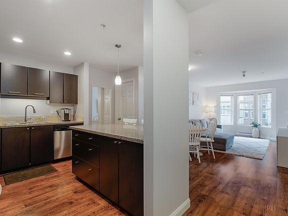 WELCOME TO SOUTHBROOK - This 843 SQFT Langley City home features a sleek and contemporary 2 bed 2 bath floorplan that is perfect for entertaining: gourmet kitchen complete with stainless steel appliances, plenty of thoughtful cupboards, breakfast bar and granite countertops. Fantastic floorplan featuring sought-after 'wide' layout, with bedrooms at the opposite sides of the unit, allowing for more privacy and a spacious flow. Open concept living/dining rooms feel spacious with expansive windows and boast plenty of room for friends and family to gather. Tons of in-suite storage! One parking stall included. Great location near Willowbrook Mall, Brydon Park, restaurants, transit & more. Easy access to Trans-Canada Hwy + Fraser Hwy. Book a Private Showing!