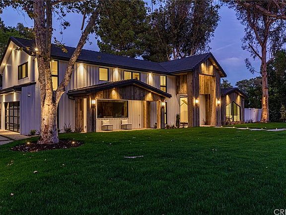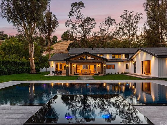 Stunning contemporary farmhouse located in the exclusive guard gated community of Hidden Hills. Recently completed with amazing attention to detail, high quality finishes, with an emphasis on indoor outdoor luxury living. The home sits on a rare flat 1+ acre land, on one of the most desirable streets in Hidden Hills. As you enter this stunning home through its 10 ft glass pivot door, you are lured in by the open layout, straight through the Fleetwood pocket doors to your expansive private backyard. The centerpiece of the backyard is a breathtaking zero edge pool and spa with a gas fire pit, and a reclaimed wood pavilion. The kitchen features white oak cabinetry, Miele appliances, and a massive center island. Some of the other highlights of this home are 2 masters, one downstairs with Fleetwood pocket doors opening to the backyard, upstairs master bath with steam shower, recessed base moldings, white oak doors with invisible hinges, recessed television over the family room fireplace, and control 4 system with surround sound throughout the home including the outside pavilion.