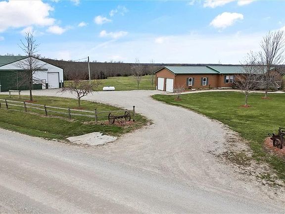 Welcome to this beautiful home situated on 24+/- acres. With over 2500 square feet of living space, this home offers ample room for comfortable living. Between the massive shop and all the extras on this property you will not be disappointed. The finished walkout basement adds to the overall appeal of the property. As you enter the home, you'll be greeted by a large living room that flows into the spacious kitchen. The kitchen boasts plenty of cabinets, making it a breeze to store all your essentials. The dining area overlooks the back deck, providing the perfect spot for enjoying meals while taking in the sunsets. The master bedroom, thoughtfully located on a separate side of the home from the other two main floor bedrooms, offers privacy and tranquility. The master bedroom also features a convenient master bath, adding to your comfort and convenience. The basement is a true gem, completely finished and designed for entertainment. It includes a bar area, perfect for hosting gatherings with friends and family. Additionally, there is a large office with French doors, providing a private space for work or study. A spacious non-conforming bedroom and a large full bathroom complete the basement area. The home showcases its beauty both inside and out. The exterior boasts extensive landscaping, creating a visually stunning backdrop. A patio offers a charming space for late-night gatherings or simply relaxing and enjoying the peaceful surroundings. In addition to the attached garage, this property features a newer 54x64 metal building with concrete floors, providing ample storage space for all your belongings. On the other side of the property, you'll find another large metal horse barn, perfect for equestrian enthusiasts. The entire property is fully fenced, offering security and peace of mind. Don't miss the opportunity to own this well-cared-for home on expansive acreage.