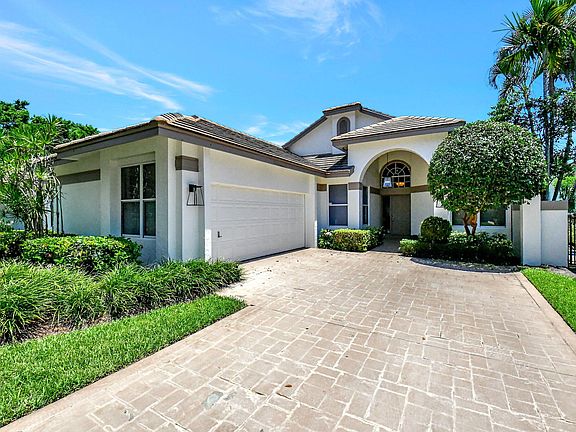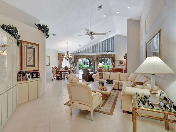 Located in the prestigious Broken Sound Club, you will want to call this ranch style Whisper Trace property with stunning golf course views home. You'll love the split bedroom floor plan with vaulted ceilings, porcelain tile floors and floor to ceiling windows that allow an abundance of natural light shine through making this home warm & inviting. The spacious kitchen is equipped with stainless appliances, custom cabinets, plenty of counter space & nice eating area for 4. The primary suite with vaulted ceilings features a large walk-in closet and en suite bath with bright skylight, large soaking tub, and separate shower. Step outback to enjoy the Florida sunshine while cooling off in your private pool and get that true country club feel with your club course golf views.