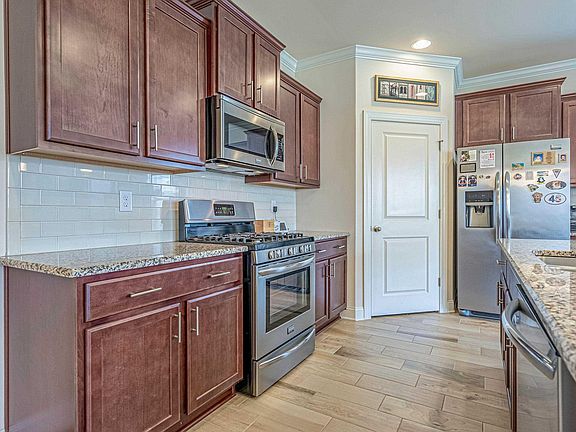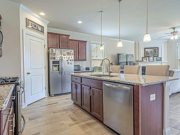 - Features: Breakfast Bar, Kitchen Island, Pantry, Stainless Steel Appliances, Solid Surface Counters