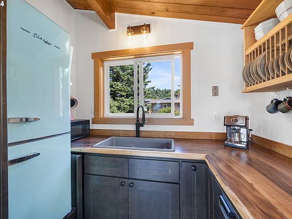 Perfect Oceanview Cape Meares Cabin! This home has been completely updated inside and out; with an open floor plan that allows for maximum living in a compact space. If you are looking for a beach getaway where you can start relaxing on day 1- this is it! The projects have all been done for you. Warm wood trim balances a clean modern vertical shiplap; the new hearth hosts an efficient and cozy Vermont Castings Woodstove, designed for firewood storage underneath. A stunning MCM shell chandelier graces the center of the great room, nestled in the vault of the ceiling. The complete updated kitchen was designed for maximum efficiency, and the live edge Acacia countertops provide a gorgeous and functional workspace. Trex deck on both the grilling patio off the kitchen and the ocean view deck on the west assure that your maintenance stays low while your enjoyment is high. Below, the large double garage has room for boat parking and all the beach gear (bikes, kayaks, crab pots, wagons: it will all fit). Cape Meares is the authentic Oregon Coast, and this nest is the perfect place to roost.