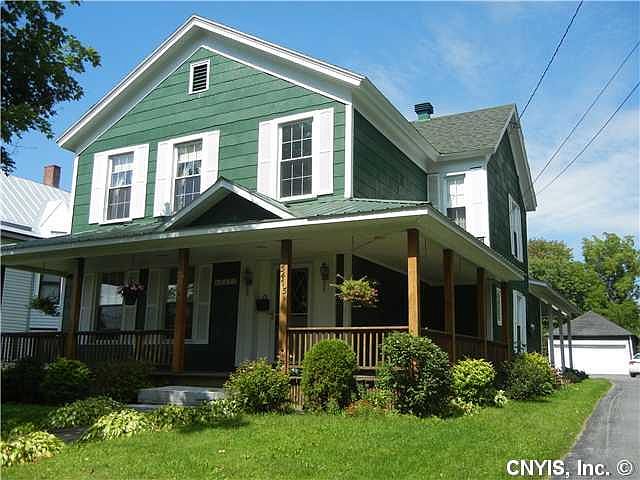 At first sight you will love the looks of this village home with the wrap around porch that invites you in. Sitting on a deep lot, as you enter from the back you will come into a large eat in kitchen that is open to a cozy den with a natural gas fire place.An antique display case also comes with the house that use to be in local jewelry store. A formal living room, an office, and a full bathroom, and yet another room, which could be a bedroom or another living room space complete the downstairs. The upstairs could easily be a small apartment for added income with its own entrance. Call today