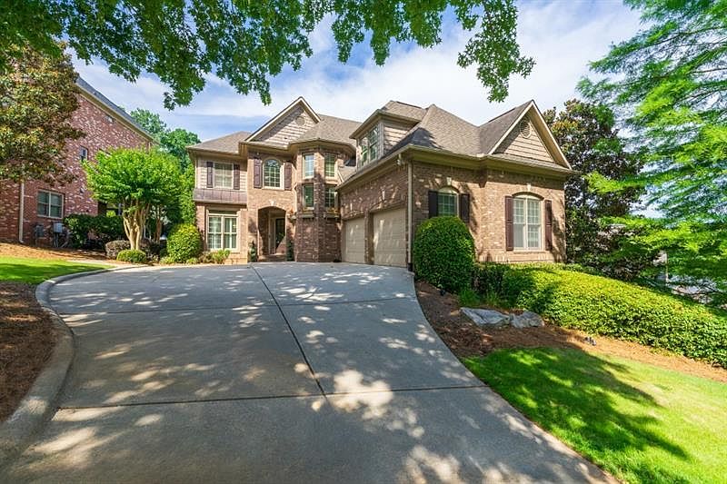 Step into the charm of yesteryear combined with modern luxury in this stunning Queen Anne-style home nestled in the prestigious Vinings Estates community. As you approach, the iconic brick front and Rapunzel tower welcome you, hinting at the elegance that lies within. Upon entering, you are greeted by a grand two-story foyer bathed in natural light. The rich wood flooring guides you through the open living area, where the kitchen, boasting new appliances and gleaming lights, invites culinary creativity. Morning coffee can be savored in the cozy breakfast area while plantation shutters add a touch of classic sophistication. The spacious living room, filled with light from numerous windows, flows seamlessly from the kitchen, creating the perfect setting for family gatherings and entertaining. A separate dining area offers an intimate space for formal dinners. On the main floor, a well-appointed bedroom and full bath provide convenience and privacy for guests. Venture downstairs to discover a versatile basement, where entertainment and relaxation await. Imagine hosting friends at the stylish bar area, enjoying a workout in the dedicated space, or unwinding in the luxurious full-body shower. With its enchanting constellation ceiling, the movie theater promises magical movie nights and sports events. As you explore the upper level, the primary bedroom beckons, offering a private retreat with a walk-in closet and an exclusive deck overlooking the lush, landscaped backyard. Additional bedrooms are generously sized, each bathed in natural light. Step outside to find a haven of relaxation and fun. The secondary deck leads down to a beautifully landscaped backyard featuring a children's play area with rubber mulch and an inviting fire pit for adult gatherings. Multiple outdoor spaces ensure you can entertain or unwind in style. This home is not just a residence but a lifestyle, blending classic elegance with modern amenities, perfect for those who love to entertain and relax. Experience the best of both worlds in this exquisite Queen Anne-style home in Vinings Estates. The HOA for Eastgate is $450/annually, but for an additional $730/annually, you can access all the amenities at Vinings Estates.
