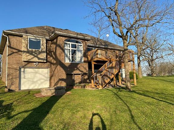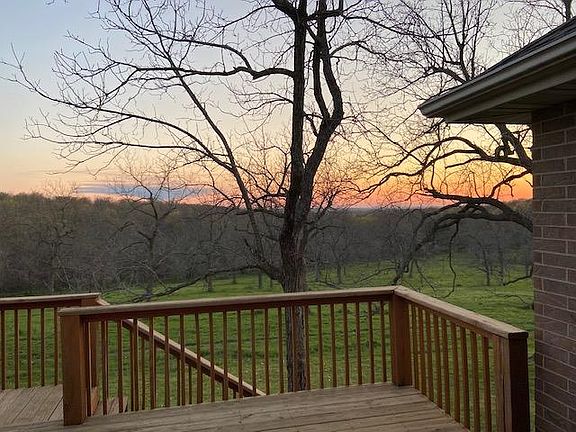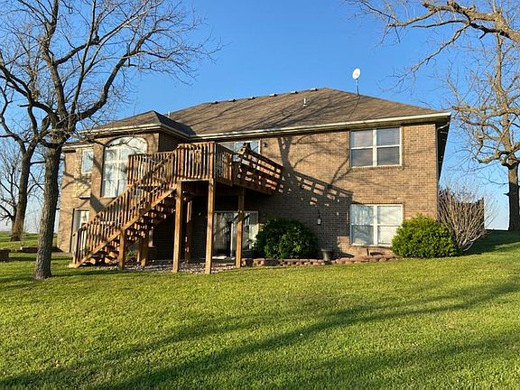 From the gated entry and the curving drive, you'll find this all brick 4 bedroom 3 bath all brick walk out basement perfectly placed to capture every wonderful sunset from the panoramic windows that span the back of this one of a kind house in Brighton. With vaulted ceilings, hardwood floors, and an open floor plan you'll finda three bedrooms and office on the main floor. From the foyer, you'll see the office to the left and the master suite to the right. You'lll step into the open living dining room with a n open stariwell poised under a stunning arched widnow. From the dining area a sliding glass door takes you out to the large deck with built-in seating with steps to the back yard. The open kitchen has light finished cabinets and a island with a breakfast bar. the laudry room and pantry adjacent to the kitchen lead to a big two car garage with extra storage space. The unique master suite has a large a bedroom with a bayed window wall. Step into the master bathroom and youll see the picture perfect jetted tub with a walk in shower, double vanities, double closets. The two ancillary bedrooms on the main floor share a hall bath and and each has a walk in closet. The full walk out basement has tall ceilings, a huge family room, kitchenette, storm shelter, and extra storage along with an additional bedroom, bath , and additional den or non conforming bedroom space. In addition there's a basement garage/John Deere room! From the basement, you can walk out to a spacious covered patio. Situated on 5 secluded acres, the home has a deeded driveway surrounded by farmland. A rare find with a quick 15 minute drive to Springfield via a short drive to Highway 13. The wildlife abound in this oasis!