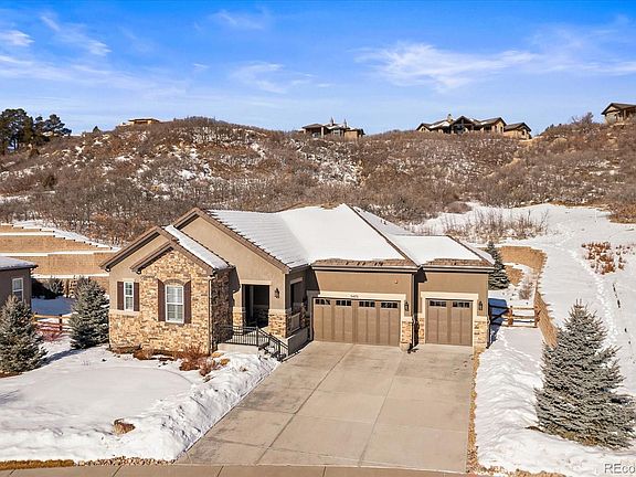 STUNNING LIKE-NEW PRISTINE SEMI-CUSTOM EXECUTIVE RANCH-STYLE HOME FEATURING MAIN-LEVEL CASITA PLUS PRO-FINISHED BASEMENT ON LOW-MAINTENANCE PRIVATE SITE OVERLOOKING OPEN SPACE OFFERING FIRST-CLASS LIVING IN TOP NEIGHBORHOOD NEARBY CASTLE ROCK CONVENIENCES & I-25 COMMUTE!! HIGHLY-DESIRABLE & OPEN FLOORPLAN WITH SPACIOUS ROOMS, 10' CEILINGS ON MAIN LEVEL & 9' IN BASEMENT, LARGE WINDOWS, LIGHT & BRIGHT, EXTENSIVE WOOD FLOORS, LUXURY UPGRADES & BUILT-INS THRUOUT, ULTRA TASTEFUL & STYLISH DECOR ... TRULY MOVE-IN CONDITION!! MAIN ENTRY FOYER OPENS TO STUDY/LIVING ROOM & SECLUDED CASITA SUITE WITH KITCHENETTE & LAUNDRY AND ITS OWN SEPARATE EXTERIOR ENTRY, OPEN STAIRWAY, GRAND GREAT ROOM WITH STONE FIREPLACE OVERLOOKING GORGEOUS CHEF'S KITCHEN & NOOK FEATURING 8x6 ISLAND, MODERN SS APPLIANCES, WALK-IN PANTRY, EXPANSIVE SLAB-GRANITE COUNTERS & AMPLE CABINETRY WITH DISPLAY SPACES, ALL ADJACENT TO FORMAL DINING ROOM!! LUXURIOUS PRIMARY SUITE OFFERS SPA-LIKE 5-PIECE BATH WITH OVERSIZE TUB & SHOWER, LARGE CUSTOMIZED WALK-IN CLOSET, TOP FINISHES!! COMFORTABLE MAIN-LEVEL SECONDARY BEDROOM WITH WALK-IN CLOSET NEAR FULL BATH!! WITH 4900 EXQUISITELY FINISHED SQ FT THERE ARE MULTIPLE LIVING & ENTERTAINING OPTIONS INCLUDING BASEMENT GAME/REC AREA, FAMILY ROOM/MEDIA, THEATER/EXERCISE ROOM, TWO ADDITIONAL BEDROOMS EACH WITH WALK-IN CLOSETS, NEARBY 3/4 BATH!! HIGH-EFFICIENCY HVAC IN LARGE STORAGE ROOM!! CAR & HANDYMAN'S DREAM OVERSIZE GARAGE SHINES WITH FINISHED FLOOR, PAINTED DRYWALL FINISH, HIGH-END CABINETRY & WORKSPACES, LARGE WINDOW & SERVICE DOOR!! GENEROUS PRIVATE OUTDOOR SPACES YET EASY MAINTENANCE WITH LUSHLY LANDSCAPED FRONT & BACK YARDS, COVERED FRONT PORCH, COVERED BACK PATIO PLUS ADDITIONAL PATIO, BRICK-PAVER SIDE PATIO OFF GARAGE SERVICE DOOR!! LOT INCLUDES OWNERSHIP OF UNIQUE NATURAL SCRUB-OAK SCENERY BEYOND BACKYARD FOR ENJOYING HIKES, PICNICS & VIEWS PLUS OPEN SPACE WITH NO OTHER HOMES NEARBY!! IMAGINE THE POSSIBILITIES ENJOYING THIS EXQUISITE SHOWHOME-LIKE OPPORTUNITY!!!
