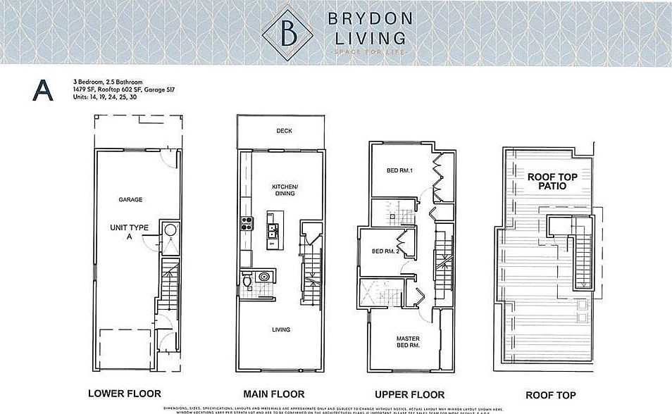 Brydon Living - SPACE FOR LIFE - Final Phase Two! Modern architecture townhomes with great curb appeal and front to back Rooftop patio views of Langley City! Spacious front to back Rooftop patios for all your entertainment/relaxation needs. Fully functional layouts designed for grand gourmet kitchens providing quartz countertops, top quality appliances and optional two-tone cabinetry. Spacious formal living area with plush carpeting in all bedrooms, hallways & stairways providing comfort throughout the units. Located within short distance to schools, rec centres, parks/trails, shopping, restaurants, public transit & future SkyTrain. FINAL PHASE TWO! Type A unit: 1479 SF + 602 SF Rooftop + 517 SF Garage.