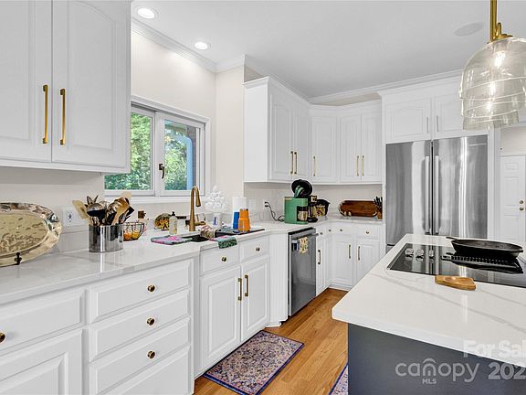 Recently updated and move in ready walkout basement home situated on a large private 1.69 acre lot. River Ridge, a well-established neighborhood in Cabarrus County, is a desirable Davidson community of custom brick homes nestled on estate size lots. Centrally located approximately 10 minutes from downtown Davidson yet only 20 minutes from I-77, Concord Mills & I-85, Downtown Mooresville, Kannapolis Ballpark & Birkdale Village. Renovations include popcorn ceiling removal, newly painted interior and cabinetry, refinished hardwood floors, quartz counters, & new appliances. Other notable features include a large primary suite with upgraded tile shower, a two-story family room with fireplace & custom built-in cabinetry, a large kitchen with breakfast nook, and a spacious laundry room. The large screened in porch overlooks the expansive level backyard which could easily accommodate an in-ground pool. The finished basement has two flex rooms and a full bath. Storage and space galore. Low HOA!