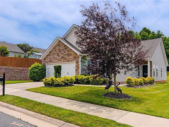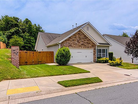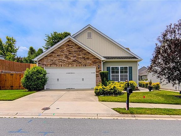 Immaculate one-story home boasting hardwood floors, elegant granite countertops, and stylish crown molding throughout. Spacious living room with a vaulted ceiling and a cozy gas fireplace, creating an inviting ambiance. The primary suite is generously sized and features a linen closet, dual vanities, and a sizable walk-in closet. Additional patio space on the side of the house offers privacy and expands outdoor living options. Enjoy the convenience of a neighborhood pool and fitness center for leisure and exercise. Ideally situated within a short drive from Winston-Salem, Kernersville, and Greensboro. Schedule your showing to see this beautiful home today! Open House This Saturday 6/17/2023 from 11am-1pm!