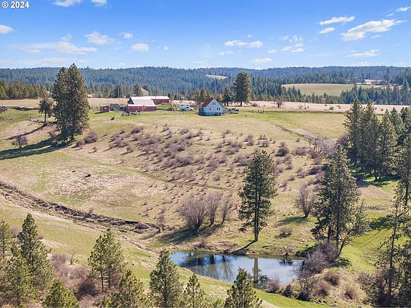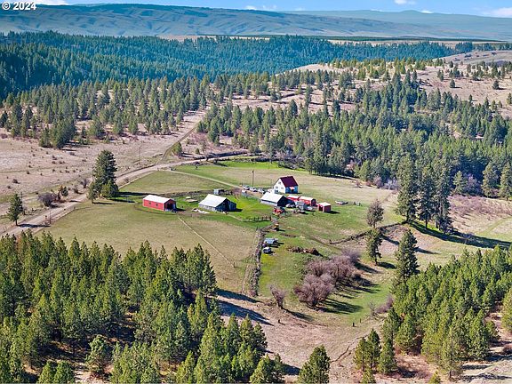Unparalleled beauty and opportunity on this expansive one of a kind property spanning over 700 acres in Umatilla County. Enjoy mountain vistas and scenic views completed by merchantable timber adding value and beauty. With LOP tags, hunters will find opportunity for outdoor pursuits. A portion of the land totaling roughly 313 acres is enrolled in CRP generating an annual income of $18,499. Whether you seek a serene retreat with ponds and water rights, a lucrative investment, or both, this Weston Oregon property offers endless possibilities amidst stunning surroundings. The three bedroom two bath home is move in ready and equipped with a newer blaze king stove to keep you warm on cool Eastern Oregon days and nights. Large barns, shop, chicken coop and other purposeful outbuildings add to the endless allure and potential. Call today for your private tour of 54761 Pine Creek Road!