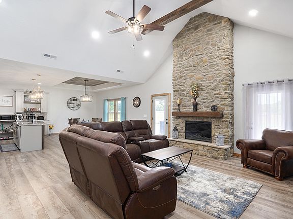 If you are a discerning buyer looking for quality and detail, this is the home for you. See this one in person because there is so much to take in. Upon entering the home the firsts thing you'll notice is the spacious entranceway and beautiful wide vinyl plank that runs through the entire house. No carpet for pets to mess up here! The living area has a soaring cathedral ceiling with wood beams to accent and a stone fireplace that runs from floor to ceiling. A large kitchen area with beautiful tile backsplash, custom hood vent, custom built and painted cabinetry, impressive granite and a pantry with a custom built wood door (matching the mudroom slider doors) and a lovely transom window accent are right next to the living area in this open floor plan home. Don't forget about the dining area with it's wood-clad trey ceiling in front of the wood trimmed kitchen island. Space is not an issue with this house, with large rooms, deep closets and extra wide hallways to give you that elbow room you just can't find in most homes. The high end finishes are particularly evident in the master bath where a luxurious soaker tub and custom dual head, walk-in shower are accented with beautiful fixtures, tile, and lighting. This is a quality built Amish home where the attention to detail and craftsmanship really shines through in every room of the house. Make sure to schedule your personal showing on this home today!