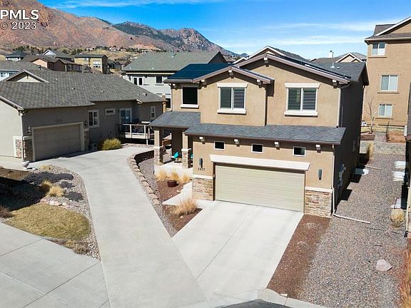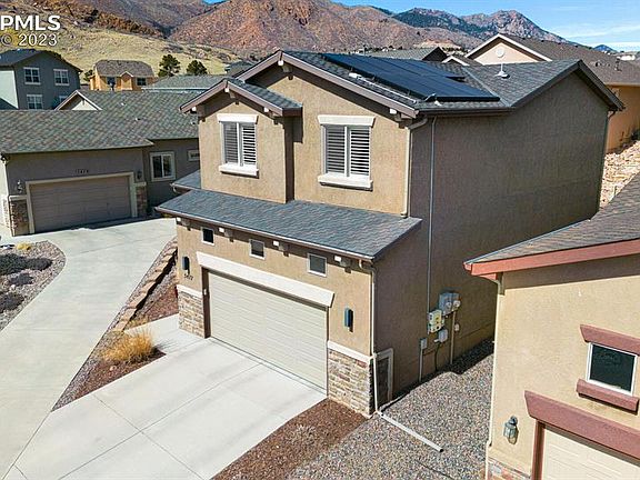 **SEE VIRTUL TOUR** Come and see this immaculate, single-family home that rests in the most desirable area on the west side of Colorado Springs. Located on a quiet cul-de-sac, this home was built in 2015 and still feels new. The spacious custom kitchen is furnished with high end cabinets and quartz countertops, pantry, bay window and a new Bosch dishwasher. Samsung, smart sense washer and dryer are also included. The kitchen opens into the living room with a vaulted ceiling that allows the heart of the home to be filled with natural light. Beautiful plantation shutters and high-end sheer window treatments have recently been installed throughout the home. Upstairs are two bedrooms with mountain views, a full bathroom, and an enormous primary room with a spectacular ensuite bathroom. Included is an eco-friendly solar system that almost eliminates your electrical bill, even while running the heater and air conditioner. A Class 4 impact resistant roof was installed in 2019. This home also includes a 2-car garage and an unfinished basement which could be finished or used for a large storage and exercise area. It even has the plumbing roughed in for a bathroom. There is an Automatic sprinkler and drip system throughout the landscaping. Wildlife is frequently spotted while sitting on your covered front porch or on the rear concrete patio. The HOA covers grass watering, weed control, mowing, trash and snow removal (over 4") including the driveway and sidewalk. From this house you can hike or bicycle to Ute Valley Park, Mountain Shadows Park, and the world famous Garden of the Gods Park. You have easy access to a large network of trails that can take you on endless adventures. You will love living on the edge of the urban interface. It’s the perfect balance of peaceful living, adventure, and convenient amenities.