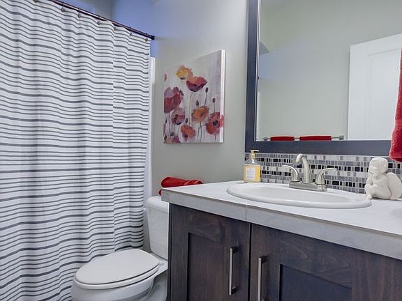 This immaculate home has an abundance of upgrades in desirable Paramount subdivision and is less than two years old. Bright and open floor plan has custom cabinetry with under cabinet lighting in kitchen, upgraded granite and tile. The home has plantation shutters throughout. It has custom master closet, epoxy garage floor and garage cabinets by Silverline. Oversized tile walk-in shower. Upgraded carpet pad. Enjoy the spacious covered patio with BBQ hookup.
