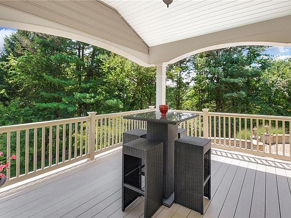 At the end of a quiet CUL-DE-SAC, with a backyard boasting absolute PRIVACY, this quietly sophisticated home has been well-planned and beautifully executed. The custom home offers 4733 SQUARE FEET on three levels and a host of details distinguishing it from the ordinary. 9 FOOT CEILINGS grace the first floor rooms. An OPEN KITCHEN design is a lovely blend of aesthetics and functionality, and a gracious breakfast area opens to the COVERED REAR DECK. An equally impressive TWO-STORY FAMILY ROOM is anchored by a FIREPLACE, while a first-floor office, living and dining rooms open to a gracious, TWO-STORY FOYER. FRONT AND BACK STAIRWAYS lead to the second floor. A personal retreat, the master bedroom suite boasts 2023 carpeting, a sitting room, custom walk-in closet, and primary bath with 2023 shower and soaking tub. Completing this floor are three additional bedrooms and a stunning, MAGAZINE READY, 2022 BATH with porcelain floors and walls and granite counters. The 2018 FINISHED LOWER LEVERL offers 1,242 sq ft and is an amazing surprise with CUSTOM WET BAR, WATERFALL QUARTZ ISLAND, wine refrigerator closet and striking cabinetry. Additionally, there is a dramatic full bath, TV room, exercise room and recreation room with WALK OUT patio doors. A 14KW GENERATOR and 3KW SOLAR PANEL ROOF SYSTEM give peace of mind.