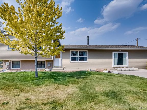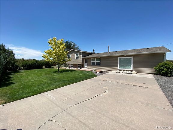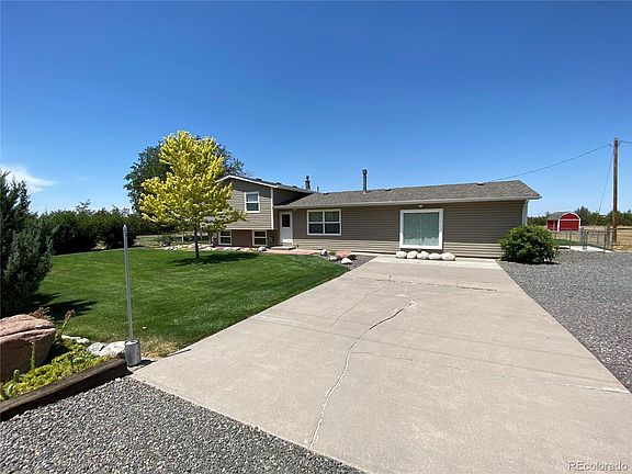 AT THIS PRICE HOME DOES NOT INCLUDE A GARAGE. SELLER WILL BUILD A DETACHED 3 CAR WITH GRAVEL DRIVE FOR AN ADDITIONAL $25,000 or a 2CAR FOR $20,000 (To be built only after close). ********Enjoy the space and serenity as you escape from the hustle and bustle of city life. *********** Lovely and charming Tri-level home poised on wonderful prime 2.53 acre lot. Immaculate, meticulously maintained and attention to detail. 4Bedroom/2-Bath The cheerful main floor boasts a lovely updated kitchen w/Caesar stone countertops, Solid Cherry Cabinets and a wonderful kitchen island. Kitchen is open concept to family and dining room. Perfect for entertaining! Upper Level has 2bedrooms and a full remodeled bath with upgraded designer tile work. Lower level enjoys a cozy family room with wood burning fireplace. This level also has a large bedroom, three-quarter bath and laundry room (Washer, dryer included). Come relax and enjoy sipping your morning coffee or entertaining friends and family under the large covered patio, while overlooking the beautiful lot, mature landscaping, lush grass, trees & bushes. Lot also features a treed windbreak, garden area and fenced back yard. Also included - *Play house *Storage shed*Large Loafing shed perfect for your animals or storage. *NEW Roof, Siding & Gutters 9/2016. Local Amenities- Great Schools, King Soopers, Park, 24-7 Gas, Banking, Salons, Daycare, Hardware stores. Easy commute to Denver & D.I.A. Well test, septic pump/permit, just completed.