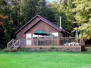 Get-a-way Cottage with open floor plan, large enclosed porch and deck. Enjoy the Lake, 20+ acres of woods, and 20 acres of open land.