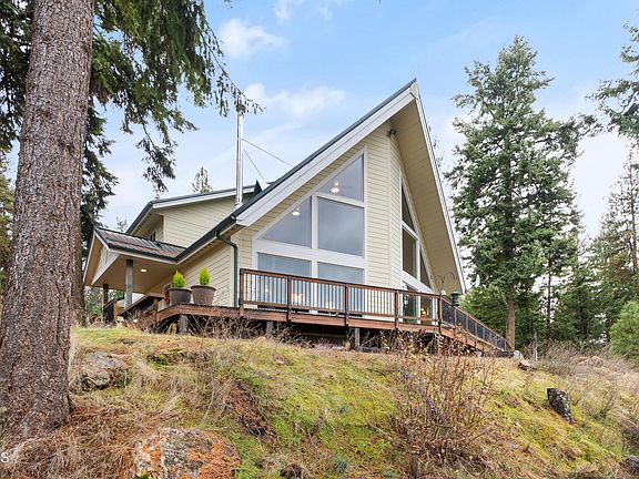 LOCATION! LUXURIOUS 5 bed, 3.5 bath home on 6.56 acres with a MULTI MILLION DOLLAR VIEW of surrounding mountains is only MINUTES from Downtown CdA! This custom home provides the privacy (gated access) and serenity of a rural Idaho homestead with close proximity to amenities in idyllic CdA! Built in 2006, this single-family home is ''homestead ready'' with huge custom windows, private well, wood burning stove, organic garden, chicken coop, fire pit, backup generator, propane tank, RV hook-ups and root cellar! Tons of natural light flood the open concept kitchen and dining room. The spacious primary suite has a double vanity, custom shower, and walk-in closet. A mother-in-law suite, with a second kitchen and bathroom, is attached to the main home making this the total package! The house features a wraparound deck, hot tub, stellar views, beautiful landscape and extensive outdoor living space. There are too many amenities to list! Your North Idaho dream home!