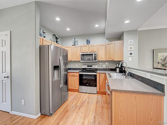 Welcome to this beautiful Rowhome located at The Water Tower Village community of Olde Town Arvada. This property offers a comfortable & convenient lifestyle with its 2 bedrooms, 3 bathrooms & attached 2 car garage. You will notice hardwood & tile flooring throughout the entire home. No carpets to clean! The entryway provides plenty of room to kick off your shoes, hang up your coat, set your keys down, and head up to the beautiful main level living area. You will be greeted by a spacious kitchen featuring beautiful maple cabinetry and newer stainless steel appliances. The kitchen also includes a peninsula, providing ample space for cooking and entertaining with additional seating. The dining area is adjacent to the kitchen and offers space to enjoy meals with family and friends. Settle down into the large living room or step out onto your private balcony. In addition, you have an office space perfect for those who work from home or need a quiet space for studying. This floor plan conveniently includes a half bathroom on the main level. With its modern lighting, Bose Surround Sound system, ceiling fan, real hardwood floors throughout, crown molding, and abundance of windows, this area is both functional and stylish. The bedrooms, located on the second level, are both spacious and feature wood flooring and large windows providing a warm and inviting atmosphere. The primary bedroom offers additional amenities such as a ceiling fan, multiple closets, and an ensuite bathroom. The ensuite bathroom is appointed with double sinks and a large glass enclosed shower. The second level includes another full secondary bathroom with tub/shower and a laundry closet. The Water Tower Village community offers a well appointed community fitness center, club house and seasonal swimming pool & hot tub. This desirable community is less than a half mile to the amenities of Olde Town Arvada shops, restaurants, and the Light Rail Gold Line. Imagine making this rowhome your new home!