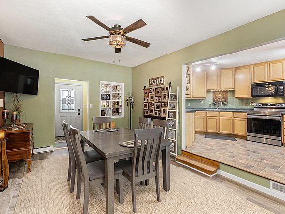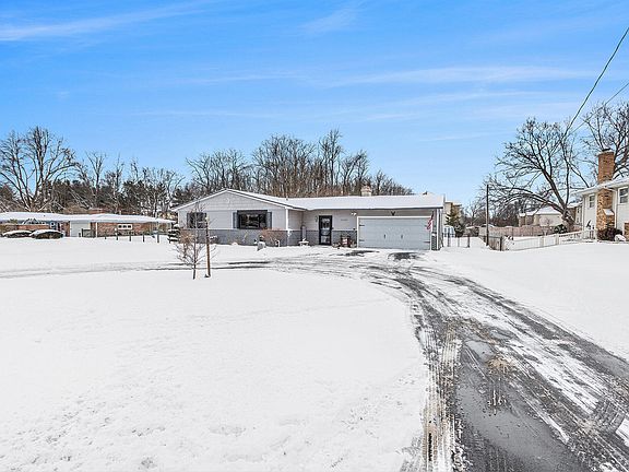 This growing and thriving town offers this modern ranch style home. A property that spans 1400 sqft and sits on almost a half acre lot. Home offers 3 bedrooms and 1 1/2 bath, With the main bedroom having access to the half bathroom. Pass the foyer, you'll step into the dining area that boasts a new electric fireplace adorned with beautiful tile work. The open kitchen area has so much cabinet space thats just perfect for the cooking enthusiast. The spacious living area is filled with natural light, thanks to the new energy efficient Anderson windows throughout the front of the home. The home also keeps its charm with its original hardwood floors. You can also enjoy the convenience of having laundry on the main level. Step through the new sliding glass doors where you'll find a large sun room. This is a perfect area for a peaceful morning to sit and enjoy your cup of coffee. It's conveniently also a great place for entertaining, as it sports its own bar area. Keep your guests entertained on your new deck and fabulous backyard, that includes a new privacy fence. This property is warm and inviting throughout, but it also includes so much new! Let's start with the metal energy efficient roof that was placed in 2021. The water heater that is a year old. The front windows and back doors that were replaced in 2023. And the circular driveway that has new asphalt, and gives great curb appeal. This home is move in ready and the perfect location for new and exciting career opportunities. A must see in person, get in before it's gone!
