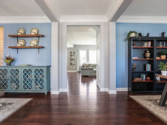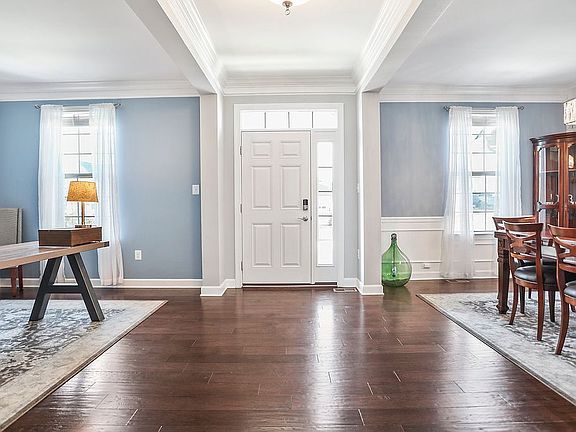 This one checks all the boxes! Move in ready, this stunning Colonial makes a great first impression and offers over 3000 sq ft of above grade living space. Loaded with updates- Chef's kitchen with a gas cooktop, double wall ovens, granite counters, stainless steel appliances and a large center island with an undermount sink. Beautiful upgraded trim detail and high ceilings throughout. Features two primary suites with attached baths along with 3 additional generously sized bedrooms- each with a walk-in closet! Convenient upper level laundry area includes built-in cabinetry and a sink. Partially finished walk-out basement complete with a family room, full bath and plenty of storage space. Maintenance free Trex deck overlooks the rear yard which backs to trees. Additional highlights include a home office, gas fireplace, soaking tub, dual water heaters, and a 4 car attached garage with a workbench. Tallyn Ridge is a great place to call home and offers a community pool, playgrounds and walking trails to nearby Pinecliff Park where you can enjoy hiking, boating and more!