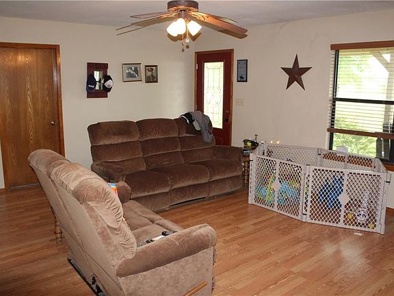 Desireable three bedroom, two bath house situated in a tranquil setting. If you are looking for that property that is outside of city limits with a nice country feel then this is a must see. The large live oak trees in back yard and the surrounding pasture land project good views while sitting at the dining table or in the kitchen area. Enjoy the relaxation from the covered front porch area as well. The house has a peaceful feel with a bay window in dining area, kitchen bar area, improved flooring, and textured walls and ceilings. There is plenty of room to add a shop or garage if wanted.