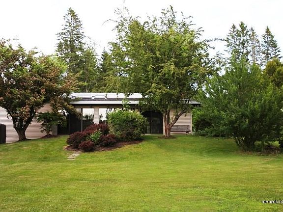 Beautiful ranch with FANTASTIC yard and family room! Sunroom with beamed ceiling, skylights, working fireplace and beautiful yard views. Look outside and see beautiful wildlife and landscaping in the truly amazing backyard! Mature trees provide shade and privacy. 3 BR 1 BA upstairs. 1 BR 1 BA downstairs (currently rented). Large living room recently completely remodeled with second working fireplace. Custom crown molding and finished hardwood window sills to match flooring. New solid 3/4 inch red oak hardwood floors throughout 90% of the home. Large 1st floor laundry room with closet. Newly renovated 1st floor bath has built in double vanity and modern tiled shower with sliding glass doors. New modern tile backsplash and quality custom cabinets in kitchen. Home has an abundance of storage with large pantries, many closets, and lots of custom built in shelving and drawers throughout. New windows throughout the home and new glass throughout sunroom for improved efficiency. 2 heat pumps ensure you are always comfortable year round. Downstairs apartment located in walkout basement with full bath and walk in shower. Provides excellent additional income in a highly desirable Hermon location. Apartment is currently rented and has been covering 50% of the mortgage every month. Large second driveway provides ample parking. Home is great for entertaining with massive family room and 1.41 acre yard. One car garage, newer furnace, newer water tank, new roof last year. Great school district, low taxes, amazing location.