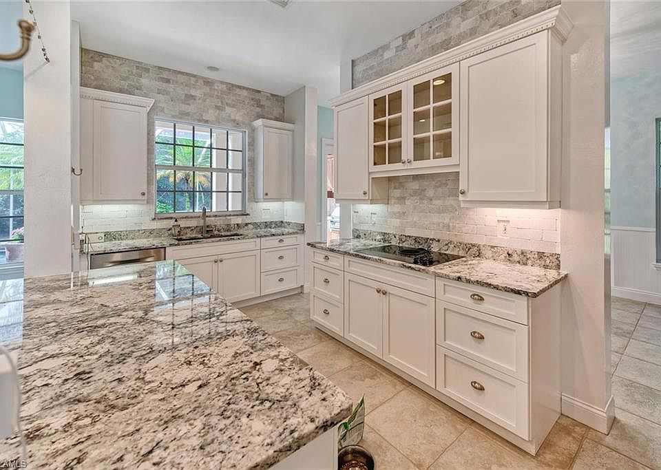 Beautifully appointed 4 BR/3.5 BA home with guest cabana all overlooking a gorgeous private pool area. This home is set-back and has a long tumbled marble driveway and is located on a cul-de-sac. Perfect for children at play. The kitchen has been recently remodeled with beautiful coastal living finishes. There is a large breakfast bar, lots of tile & wood flooring plus extra-large rooms. master bedroom and all bedrooms are on the second floor in the main house, however, the guest cabana is large enough to act as a master suite if needed. More features include an expansive outdoor living area, outdoor kitchen includes built-in grill with hood, mini-refrigerator, granite counter tops and built-in cabinets. Plus, there are minimal HOA fee of only $108 per year. And let's talk about it location! It is close to Naples Community Hospital, shopping, restaurants and best of all, you are approximately 3 miles away from the glorious white sandy beaches of the Gulf of Mexico!