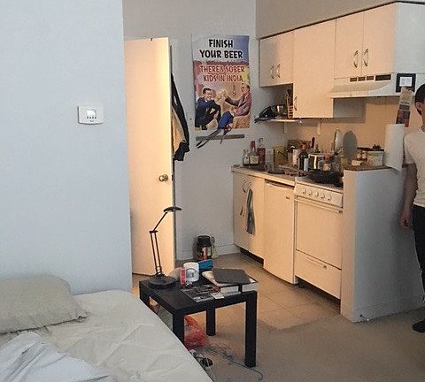 Sunny studio with bay windows, high ceilings, recessed lighting, AC, white kitchen, and all utilities included! Cats OK. All utilities inc.