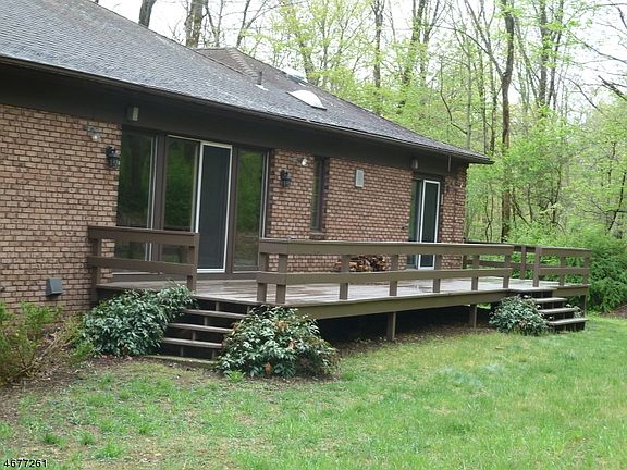 Amazing Custom Brick Ranch nestled in the woods is waiting for you to call home. This home features spacious rooms & unique features. The spacious kitchen has plenty of cabinetry & counter space. The custom builtin butcher block counter top is perfect for the chef of the kitchen. The large home office area can be used as a den or media rm. The large FR has a wall of windows & patio drs leading to the nicely sized deck. Enjoy separate fireplaces in both the FR & Formal LR. The home has elegant lighting throughout. The Mstr Bdrm has Patio drs to the back deck. Pamper yourself in the Mstr BTH, sunken tub, shower, dble vanity & more! The home has a full basement w/plenty of shelving for storage. There is also a coal/woodburning stove to help supplement the heat. Convenient location to all amenities, Rts 206 & 78.