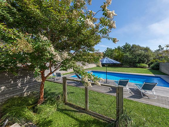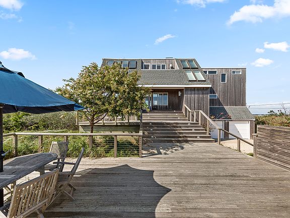 Welcome to Dune Road. This immaculate, updated contemporary features a stunning south facing pool area surrounded by mahogany decking and a Zen Garden. Rinse off from the pool or ocean in the oversized outdoor shower before you walk into the open floor-plan living/dining area. Sit by the wood burning fireplace and gaze at the stunning bayfront views as the egrets fly by. The first floor also has 2 guest rooms both with bayfront views while the 2nd floor has 2 more guest rooms and the bayfront master bedroom with sliders that lead to a deck, an immaculate updated en-suite bath, and a walk-in closet. In this tranquil property, you will surely make memories for a lifetime.