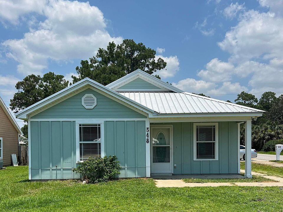 DREAMING of living at the beach THEN LOOK NO FURTHER!! 1.5 miles to the white sandy beaches of the GULF, walking distance to Gulf Shores City schools, Meyer Park, the Hugh S. and Branyon Back country trails of The Gulf State Park, boat launch, and numerous restaurants. HOUSE FEATURES NEW METAL ROOF 2021, HVAC 2018, 2020 HOT WATER HEATER, NEW LVP FLOORING, NEW KITCHEN COUNTER TOPS, CABINETS, AND STAINLESS APPLIANCES. This fenced corner lot allows for easy entry to backyard and a 14x22 single carport with garage door, 5x13 outside heated/cooled storage closet, and wide gate for access to backyard for a boat or car which is a rarity. The beautiful living/dining combo with raised ceiling is open to the kitchen with bar seating and a quaint barn door covering the pantry. Quit dreaming. This is the home for you!!!