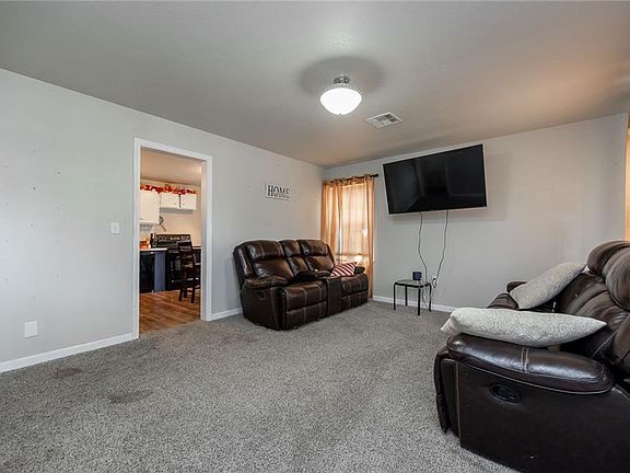 Cute Cozy Home! 3 bed 2 bath, optional living area or office. Updates done in 2021, new interior paint, new HVAC, water tank, and flooring. Spacious kitchen with ample counter space. The owner suite is a good size with sliding glass door to the backyard and oversized laundry closet. The backyard is private, with 2 car garage and large carport. Near Tinker, highways, shopping, and restaurants. Come make this your home!